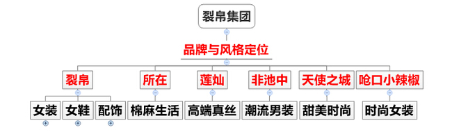 1、產(chǎn)品端:裂帛家有多少個品牌,定位分布是什么?