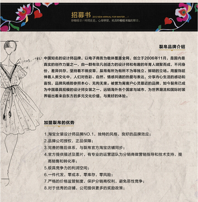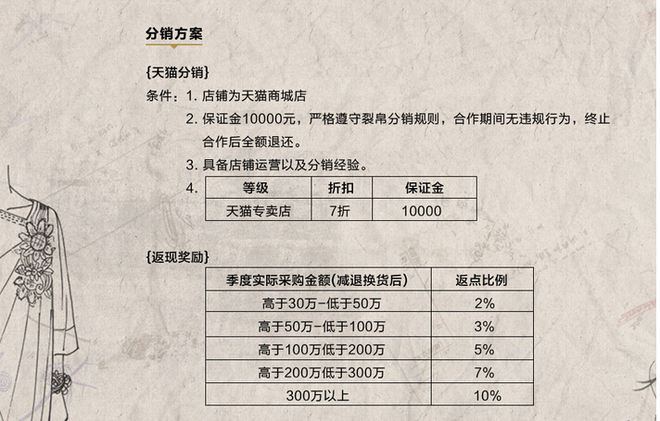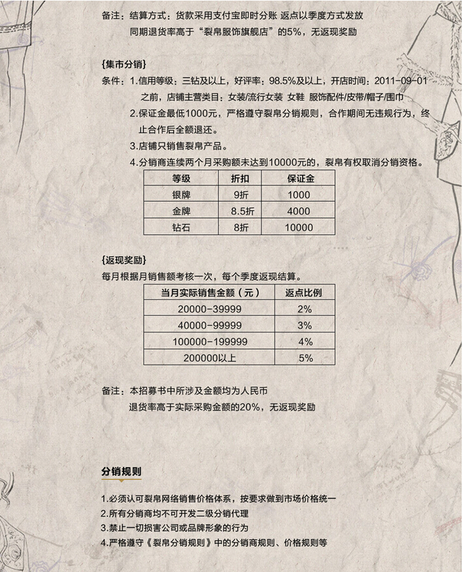 渠道:裂帛分別都進駐了多少家平臺,裂帛在淘內(nèi)有多少家分銷?裂帛是如何招募的?
