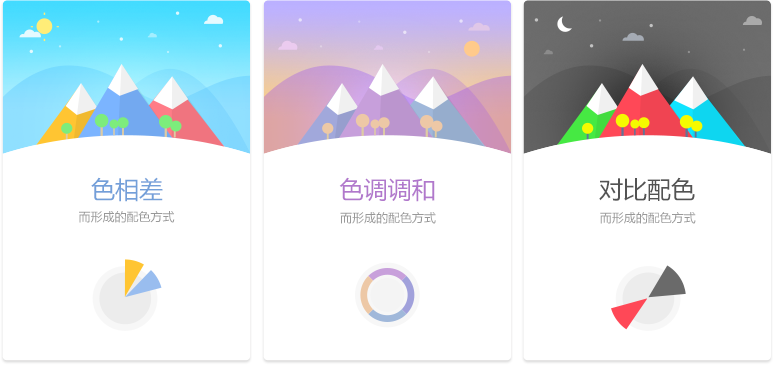 根據(jù)主色與輔色之間的色相差不同,可以分為以下各種類型:
