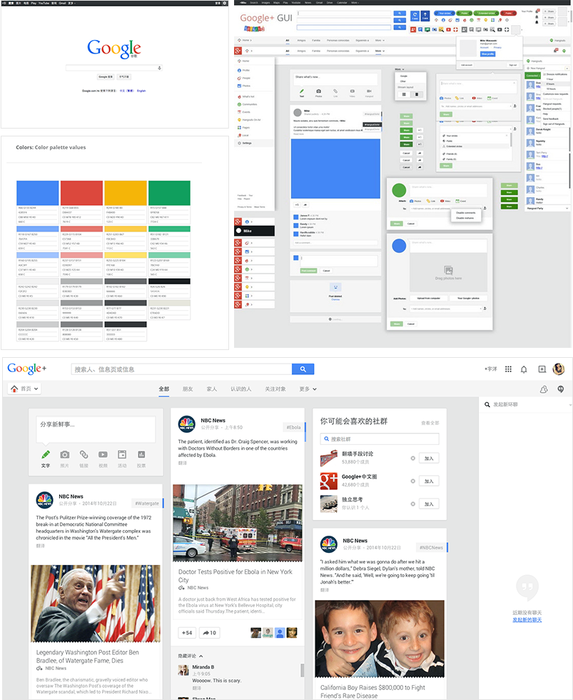 對于具有豐富產(chǎn)品線的谷歌來說,通過4種品牌色按照一定的純度比,再用無色彩黑白灰能搭配出千變?nèi)f化的配色方案,讓品牌極具統(tǒng)一感。在大部分頁面,藍(lán)色會充當(dāng)主導(dǎo)色,其他3色作輔色并設(shè)定不同的任務(wù)屬性,黑白灰多作為輔助色,對于平臺類站點來說,多色主導(dǎo)有非常好的延展性。