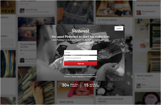 頁面中心登錄模塊,通過降低純度處理制造無色相背景,再利用紅色按鈕的對比,形成純度差關(guān)系。與色相對比相較,純色對比沖突感刺激感相對小一些,非常容易突出主體內(nèi)容的真實性。