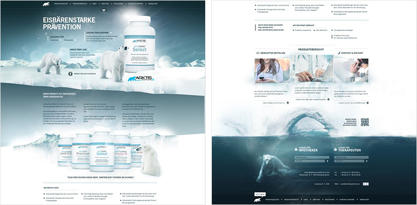 清澈調(diào)子使頁面非常和諧,即使是不同色相形同色調(diào)的配色能讓頁面保持較高的協(xié)調(diào)度。藍(lán)色另頁面產(chǎn)生安靜冰冷的氣氛,茶色讓我們想起大地泥土的厚實,給頁面增加了穩(wěn)定踏實感覺,同時暖和藍(lán)色的冰冷。